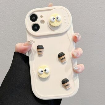 For iPhone 12 Briquettes Sliding Camshield 3D Coffee TPU Phone Case(Beige White)