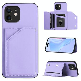 For iPhone 12 Skin Feel Four Card Slots Phone Case with Wrist Strap(Purple)