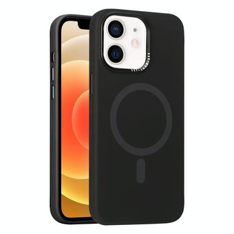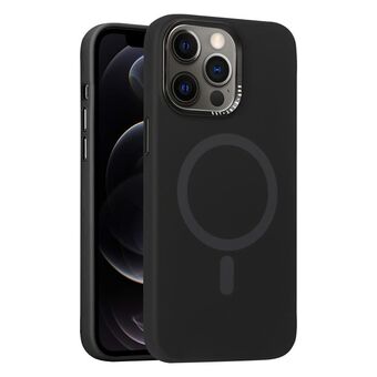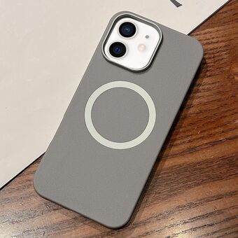 For iPhone 12 Metal Lens Frame Liquid Silicone MagSafe Phone Case(Black)