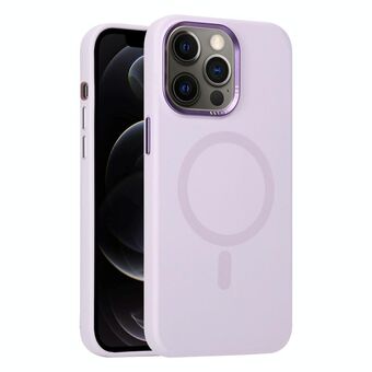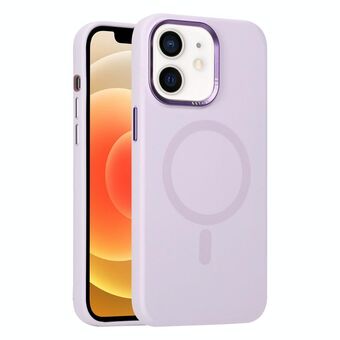 For iPhone 12 Metal Lens Frame Liquid Silicone MagSafe Phone Case(Light Purple)