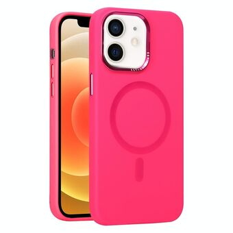 For iPhone 12 Metal Lens Frame Liquid Silicone MagSafe Phone Case(Rose Red)