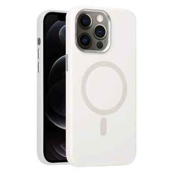 For iPhone 12 Pro Metal Lens Frame Liquid Silicone MagSafe Phone Case(White)