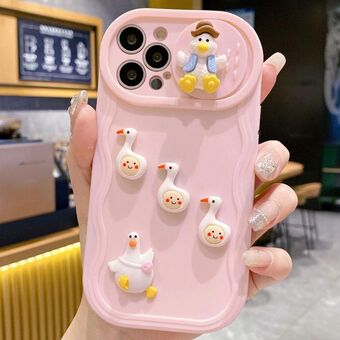 For iPhone 12 Astronaut 3D Relief Holder TPU + PC Full Coverage Phone Case(Pink)