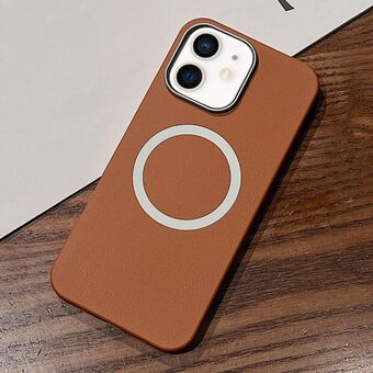 For iPhone 12 Wave MagSafe Silver Lens Frame TPU Phone Case(Brown)