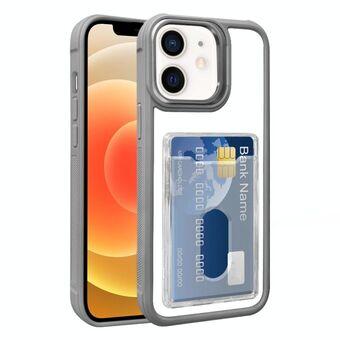 For iPhone 12 Electroplated Card Bag Acrylic Hybrid TPU Phone Case(Grey)