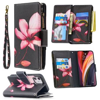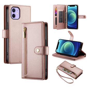 For iPhone 12 mini Nine Card-slot Zipper Wallet Bag Leather Phone Case(Pink)