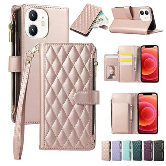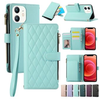 For iPhone 12 mini Rhombic Zipper Wallet Leather Phone Case(Deep Purple)