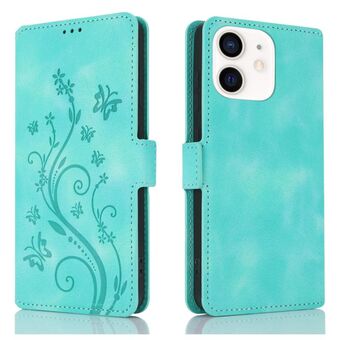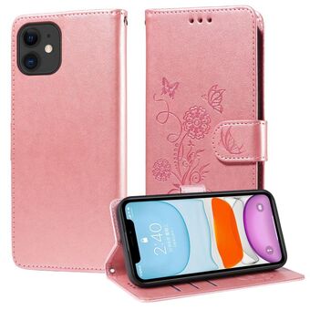 For iPhone 12 mini Embossed Butterfly Flowers Leather Phone Case(Rose Gold)