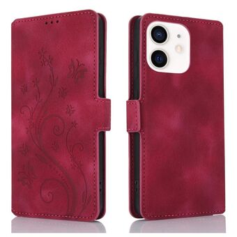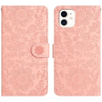 For iPhone 12 mini Floral Embossed Pattern Leather Phone Case(Pink)
