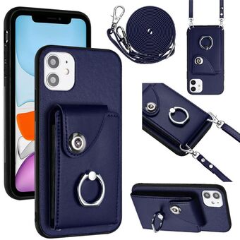 For iPhone 12 mini Organ Card Bag Ring Holder Phone Case with Long Lanyard(Blue)