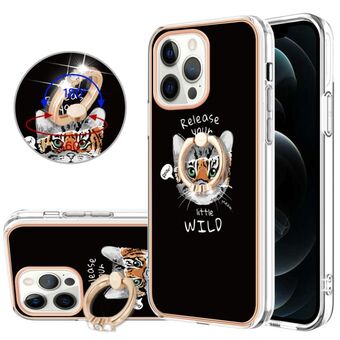 For iPhone 12 Pro Max Electroplating Dual-side IMD Phone Case with Ring Holder(Natural Growth)