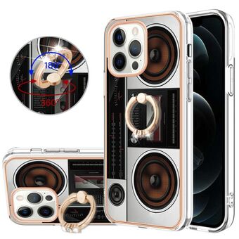 For iPhone 12 Pro Max Electroplating Dual-side IMD Phone Case with Ring Holder(Retro Radio)