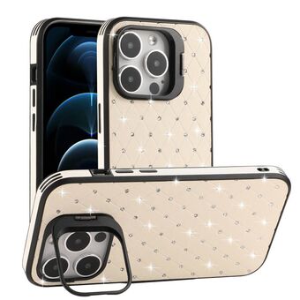 For iPhone 12 Pro Max Starry Bling Diamonds Lens Holder Phone Case(White)