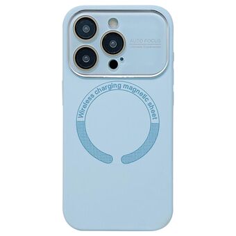 For iPhone 12 Pro Max Large Window Acrylic Glass Lens MagSafe Silicone Phone Case(Far Peak Blue)