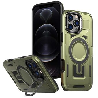 For iPhone 12 Pro Max Shield Hollow Frame Holder MagSafe Phone Case(Olive Green)