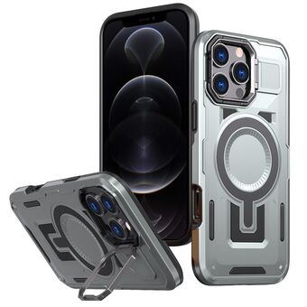 For iPhone 12 Pro Max Shield Hollow Frame Holder MagSafe Phone Case(Grey)