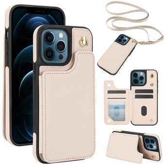 For iPhone 12 Pro Max Crossbody Dual-Buckle Wallet Back Leather Phone Case(Apricot)