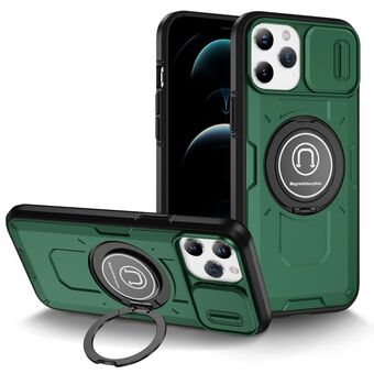 For iPhone 12 Pro Max Sliding Camshield TPU Hybrid PC Magnetic Holder Phone Case(Dark Green)
