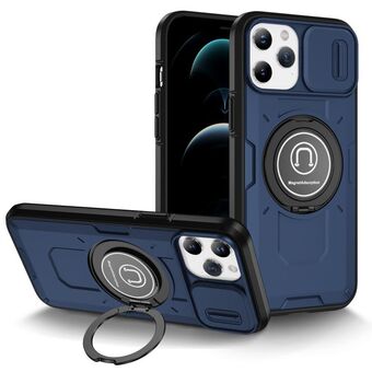 For iPhone 12 Pro Max Sliding Camshield TPU Hybrid PC Magnetic Holder Phone Case(Dark Blue)