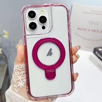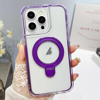 For iPhone 12 Pro Max Translucent 3 in 1 Holder MagSafe Phone Case(Purple)