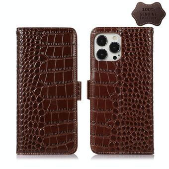 For iPhone 12 Pro Max Crocodile Top Layer Cowhide Leather Phone Case(Brown)