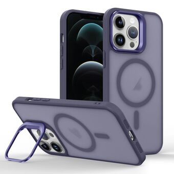 For iPhone 12 Pro Max Skin Feel Lens Holder Magsafe Phone Case(Deep Purple)