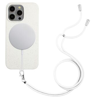 For iPhone 12 Pro Max Wheat MagSafe Magnetic Straw Material + TPU Phone Case with Lanyard(White)