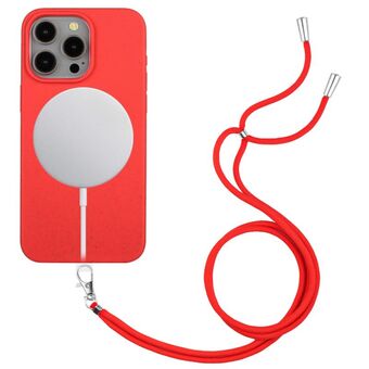 For iPhone 12 Pro Max Wheat MagSafe Magnetic Straw Material + TPU Phone Case with Lanyard(Red)