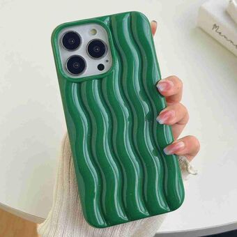 For iPhone 12 Pro Max Varnishing 3D Water Wave Texture Phone Case(Dark Green)