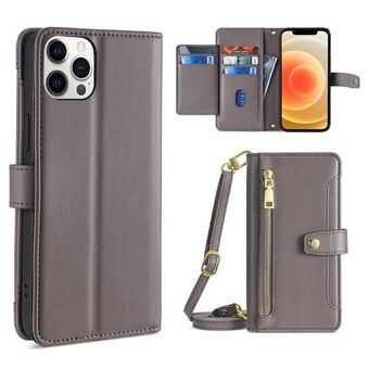 For iPhone 12 Pro Max Sheep Texture Cross-body Zipper Wallet Leather Phone Case(Grey)