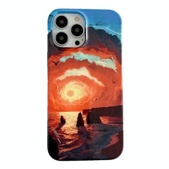 For iPhone 12 Pro Max 2 in 1 Detachable Oil Painting Sea Pattern Phone Case(Yellow Pink)