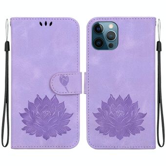 For iPhone 12 Pro Max Lotus Embossed Leather Phone Case(Purple)