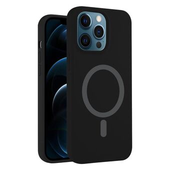 For iPhone 12 Pro Max Pure Color Liquid Silicone MagSafe Phone Case(Black)