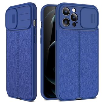 For iPhone 12 Pro Litchi Texture Sliding Camshield TPU Protective Case(Blue)