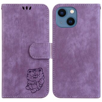 For iPhone 13 Little Tiger Embossed Leather Phone Case(Purple)