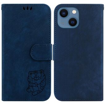 For iPhone 13 Little Tiger Embossed Leather Phone Case(Dark Blue)
