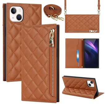 Θήκη τηλεφώνου από δέρμα με υφή σταυρού για iPhone 13 (Καφέ)