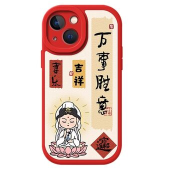 Θήκη κινητού τηλεφώνου πλήρους κάλυψης για iPhone 13 με υφή δέρματος αρνιού, σχέδιο για την Πρωτοχρονιά (Μποντισάτβα)