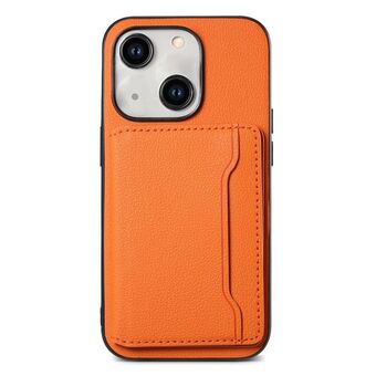 Θήκη τηλεφώνου πλήρους κάλυψης με σχέδιο τσάντας κάρτας υφής δέρματος μοσχαριού για iPhone 13 (Πορτοκαλί)