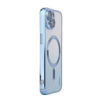 For iPhone 13 ENKAY Hat-Prince Magnetic Glitter Plated Shockproof Phone Case with Lens Film(Blue) (ENKAY)