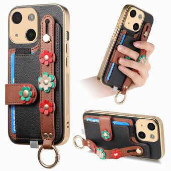 For iPhone 13 Stereoscopic Flowers Wristband Card Bag Phone Case(Brown)