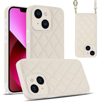For iPhone 13 Rhombic Texture Phone Case with Dual Lanyard(White)