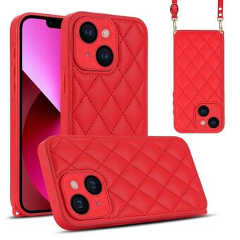For iPhone 13 Rhombic Texture Phone Case with Dual Lanyard(Red)