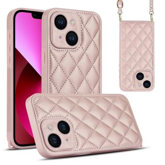 For iPhone 13 Rhombic Texture Phone Case with Dual Lanyard(Rose Gold)