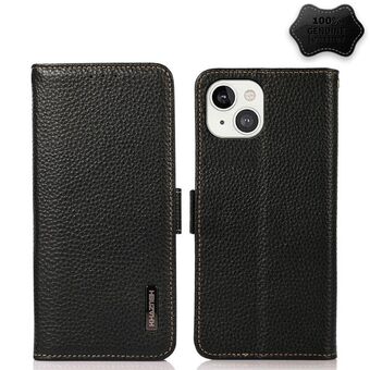 Θήκη για iPhone 13 KHAZNEH με μαγνητικό κλείσιμο, από γνήσιο δέρμα Litchi με προστασία RFID (Μαύρο)