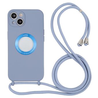 For iPhone 13 Acrylic Hollow Out Phone Case with Lanyard(Fog Blue)