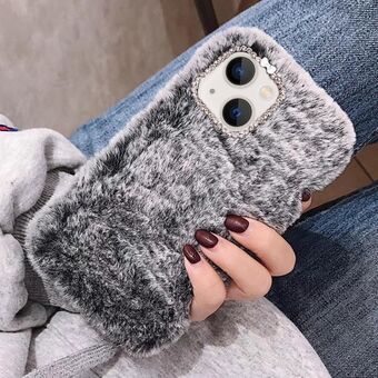 For iPhone 13 mini Diamond Lens Ring Solid Color Plush Phone Case(Gray)