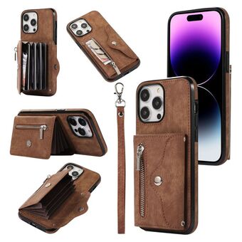 For iPhone 13 mini Zipper RFID Card Slot Phone Case with Short Lanyard(Brown)