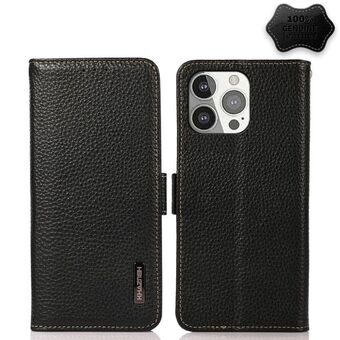 Θήκη KHAZNEH για iPhone 13 Pro με πλευρική μαγνητική σύνδεση, από γνήσιο δέρμα Litchi με προστασία RFID (Μαύρο)
