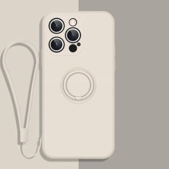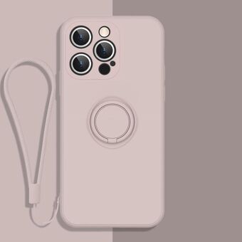 Θήκη προστασίας κινητού τηλεφώνου από υγρή σιλικόνη για iPhone 13 Pro με λαβή δακτυλιδιού & κορδόνι (Λεβάντα)